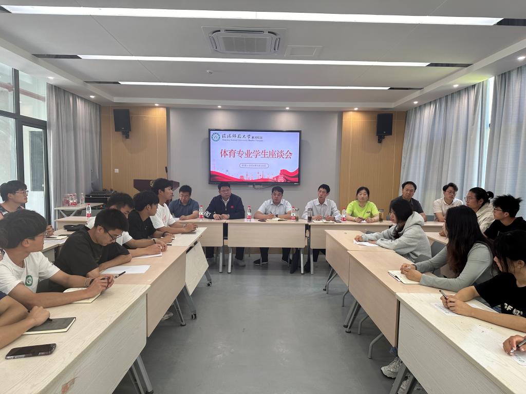 为进一步详细了解淮河校区体育专业学生的学习情况,帮助解决同学们在学习中遇到的问题和困惑,引导同学们更好的成长成才,5月16日上午,jinnianhui今年会党委书记张晓峰,院长余道明带领jinnianhui今年会有关人员赴淮河校区,召开了“淮河校区体育专业学生座谈会”,淮河校区体育专业全部班级共30多名学生代表参加了座谈会,座谈会由jinnianhui今年会院长余道明主持。