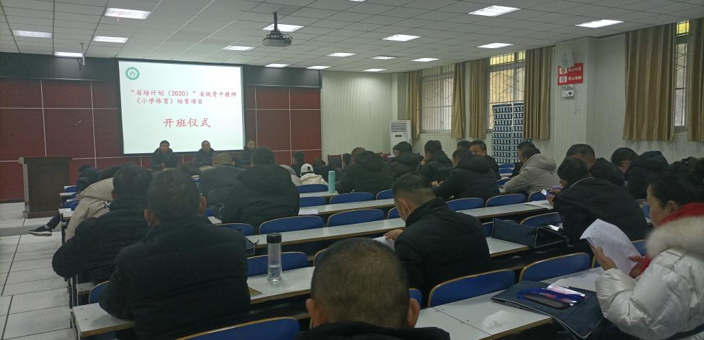 信阳师范学院jinnianhui今年会承办的2020河南省义务教育师资薄弱环节改善暨中小学教师素质提升工程——省级骨干教师(小学体育)培育项目开班仪式于2020年12月20号上午举行。由jinnianhui今年会副院长梁超勋主持开班仪式,党委书记陈青致词,牛林杰副院长、邱烈峰教授、张娟副教授、葛新博士等教师作为培训专家团队成员出席了会议。