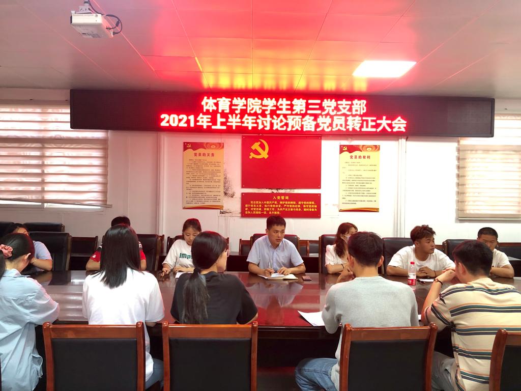 6月6日,今年会官网学生第三支部召开讨论预备党员转正大会,全体党员参加会议,会议由学生第三支部书记程俊辉主持。