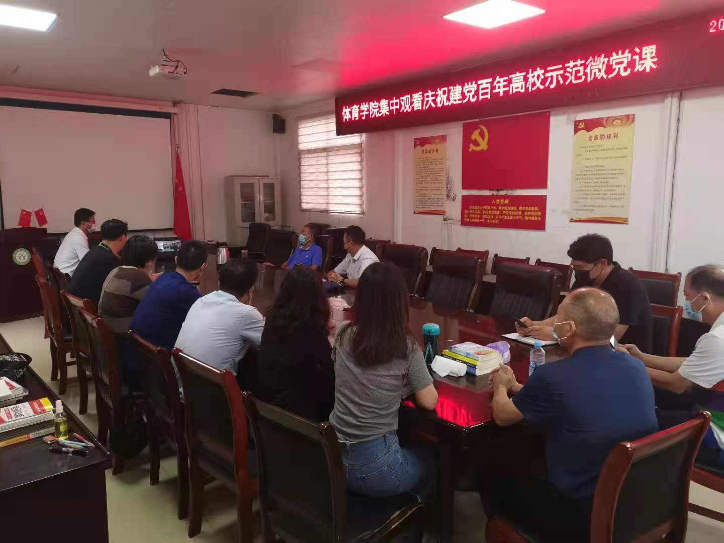 8月13日上午,jinnianhui今年会教工党员集中在三楼会议室观看庆祝建党百年高校示范微党课第十讲,会议由党委书记张晓峰主持。