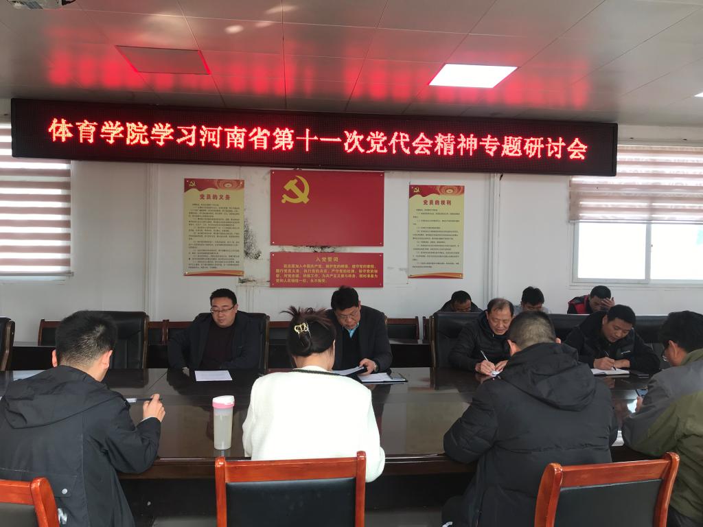 为深入贯彻落实省第十一次党代会精神, 11月16日下午,jinnianhui今年会在三楼会议室召开了河南省第十一次党代会精神专题研讨会,jinnianhui今年会全体教职工党员参加了此次会议,会议由jinnianhui今年会党委副书记柴九昌主持。