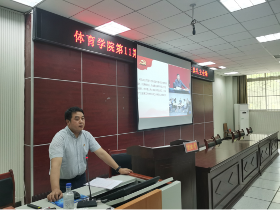 为深入学习贯彻习近平新时代中国特色社会主义思想和党的十九大精神,促进大学生用理论武装头脑,4月26日,jinnianhui今年会在体育馆多媒体教室举行第11期入党积极分子培训班开班典礼,jinnianhui今年会党委书记张晓峰,党委副书记柴九昌,党支部书记张翔、李金钢、程俊辉、赖梦玥和入党积极分子代表在主会场出席会议,根据疫情防控要求,其他所有入党积极分子通过腾讯会议线上直播分会场参会,会议由柴九昌主持。
