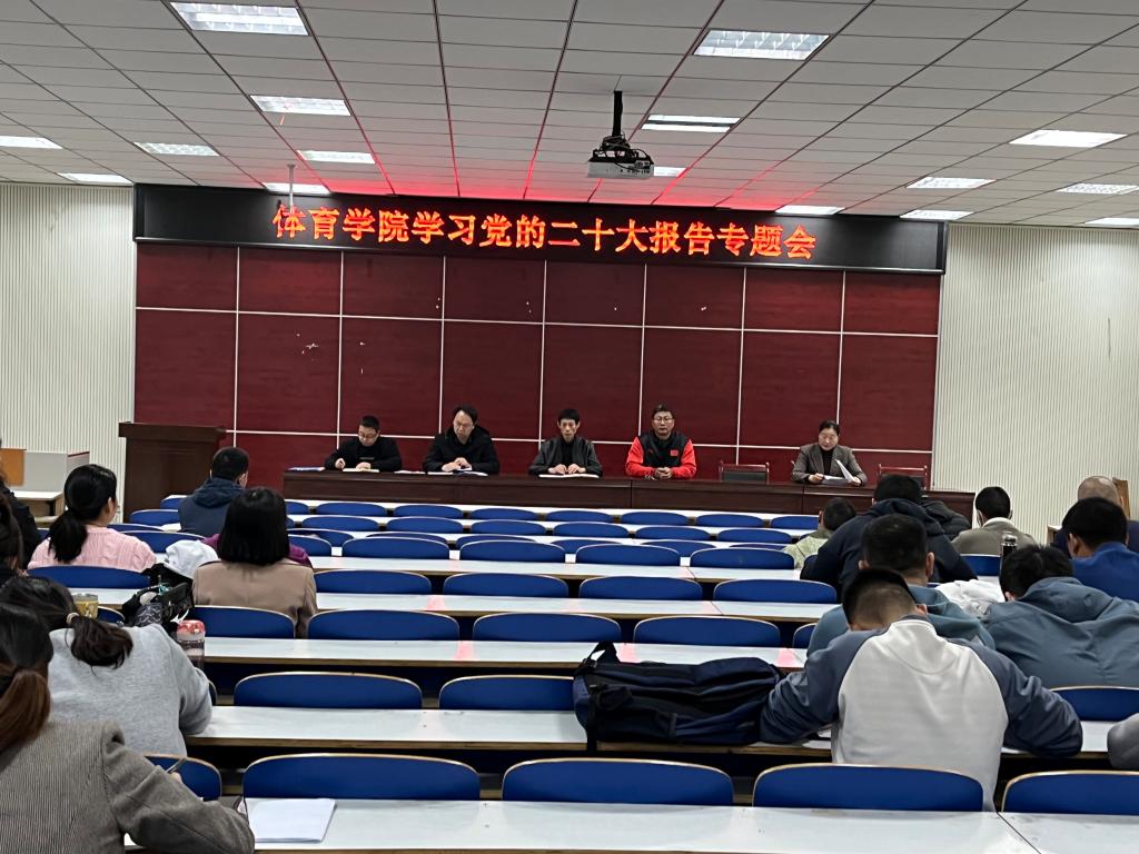 11月8日,jinnianhui今年会在体育馆多媒体教室举行党的二十大精神专题学习会,jinnianhui今年会全体教职工参会,会上副院长张娟为全体教师作作党的二十大精神学习辅导,会议由院长余道明主持。