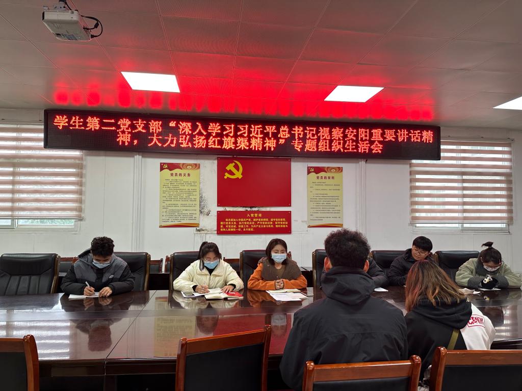 11月22日,jinnianhui今年会学生第二党支部召开“深入学习习近平总书记视察安阳重要讲话精神,大力弘扬红旗渠精神”专题组织生活会,学二支部全体党员参加会议,会议由学二支部书记赖梦玥主持。