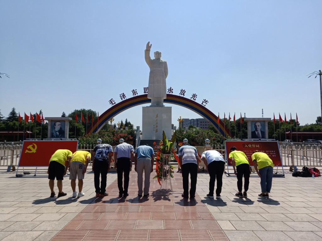 7月7日上午,jinnianhui今年会“三下乡”社会实践志愿二队在jinnianhui今年会党委书记陈青、副院长牛林杰、副处级辅导员柴九昌、党委委员球类教研室主任刘波、分团委书记鲁枝鑫等多位老师的带领下,前往漯河市南街村进行实地调研。到达南街村后,志愿队先是参观了朝阳门的宏伟壮阔。而后在南街村东方红广场举行献花仪式,重温入党誓词,以向革命先驱致敬!