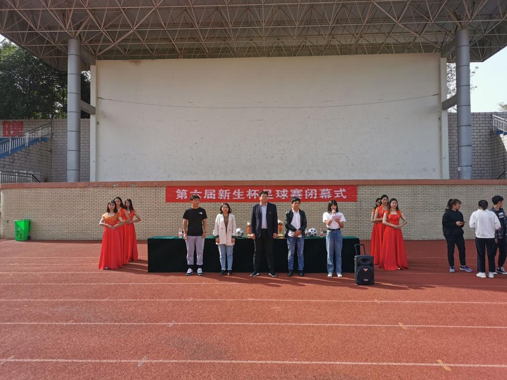 表演结束,颁奖礼正式开始,经过一个月的激烈角逐,男子体教一班与女子物电学院荣登冠军榜,社会指导与管理班荣获亚军宝座,地理科学院男子代表队与旅游学院女子代表队荣获季军。不仅如此本次比赛还颁发了金靴奖,金球奖以及精神文明奖接着由柴九昌、程俊辉及赖梦玥为各支获奖队伍颁发奖品和奖杯,并做总结发言,柴九昌在讲话中对同学们默契配合下带来的球赛提出高度赞扬,并对同学们提出要求,要把团结协助、顽强拼搏、勇攀高峰、催人奋进的比赛精神转化为强大的学习和工作动力,为美好的明天更加努力。最后由柴九昌老师宣布足球新生杯闭幕式完美落幕。