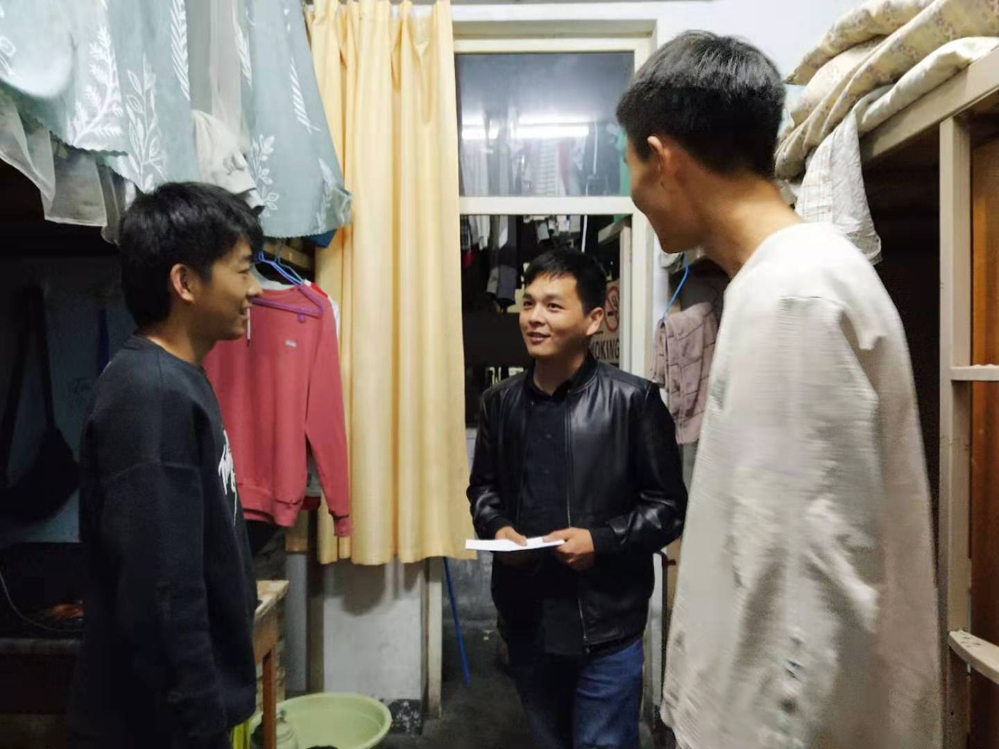 本次检查的力度大,范围广,接受检查的寝楼为jinnianhui今年会学生所在的7栋楼164个宿舍。检查老师及学生会进入寝室后,首先向住宿生了解宿舍生活情况,询问同学们日常生活中遇到的问题并给予了生活建议,同时对寝室卫生进行检查。检查过程中没有发现违规电器的使用,同学们积极配合检查工作,同时也发现了许多优秀的寝室,三位老师对表现优秀的寝室进行了表扬!检查工作结束后,三位老师对检查工作提出了合理化的建议。同时也对今后的检查工作给予了指导。检查之后,叮嘱同学们一定要注意寝室安全,安全用电,禁止晚归,也要注意保持寝室的整洁。同时在走访检查宿舍过程中与即将考研16级学子谈心谈话,缓解学生浮躁情绪;实地走访,查看19级学生过冬御寒物品,为有需要的同学发放爱心棉被做准备。