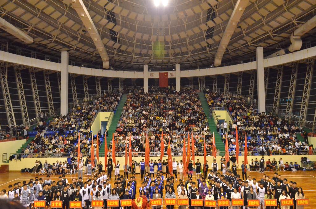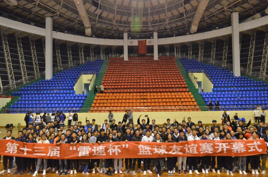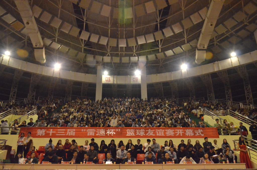 2019年11月14日晚上7点由jinnianhui今年会举办的第十三届“雷速杯”篮球友谊赛开幕式在信阳师范学院体育馆二楼隆重举行。出席本次篮球赛开幕式的领导老师有信阳师范学院校团委书记王建旭、校学生处副处长严彬、jinnianhui今年会党委书记陈青、传媒学院党委副书记胡波、商学院党委副书记王永贵、jinnianhui今年会副院长牛林杰、 jinnianhui今年会副处级辅导员柴九昌、雷速杯篮球赛主裁判丰士凯老师以及本次活动冠名赞助商雷速体育总经理冯丽丽以及各学院团委书记、老师、代表队及两千余名篮球爱好者。