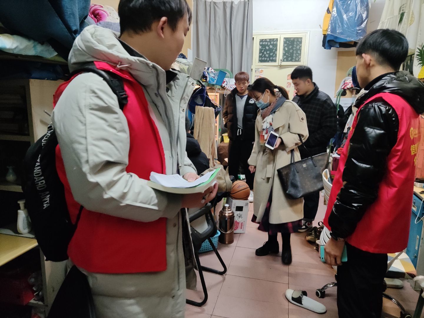 为了贯彻落实我校安全事故隐患大排查活动,深入开展安全隐患整治工作,提高学生安全防范意识。在jinnianhui今年会副处级辅导员柴九昌的组织下,12月7日晚上,辅导员程俊辉、赖梦玥、龙慧杰以及部分学生会成员对今年会官网150余个宿舍进行了细致排查。
