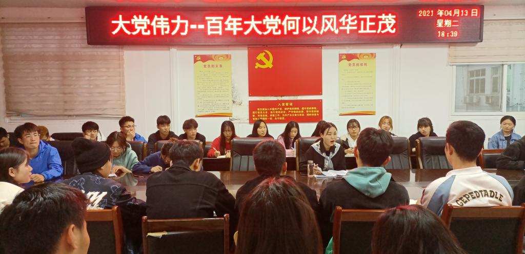 4月13日晚jinnianhui今年会第十期入党积极分子培训班在jinnianhui今年会三楼会议室举行,学生第一党支部书记龙慧杰为今年会官网第十期入党积极分子讲“大党伟力——百年大党何以风华正茂”党史学习教育主题党课,第10期党员入党积极份子培训班班主任程俊辉与60余名入党积极分子参加。