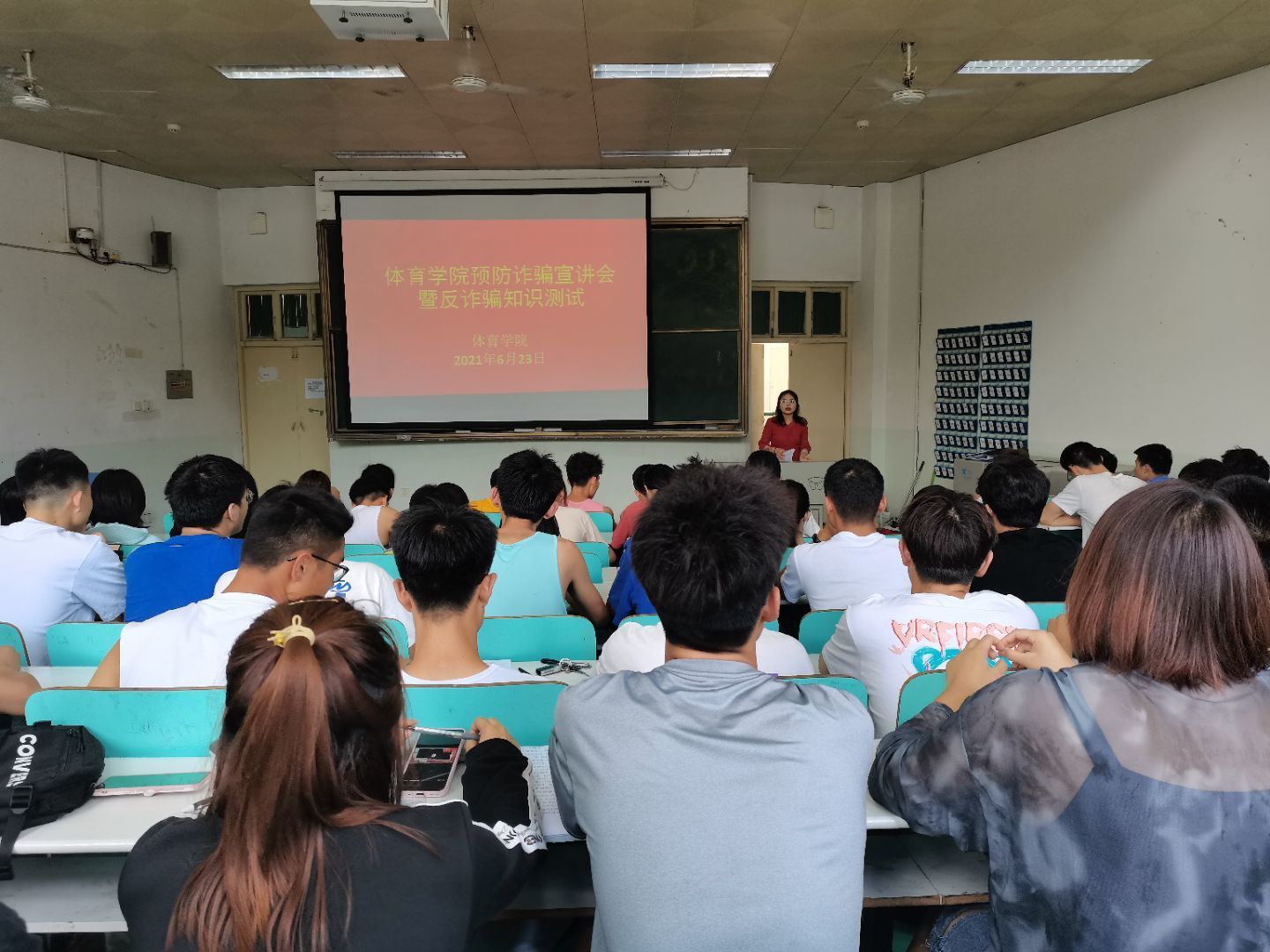 为增强学生的反诈骗意识,减少电信诈骗发生频率,保护学生的合法权益不受侵害,营造学校良好的安全文化氛围。jinnianhui今年会于6月23日上午11点在人文楼109教室召开“预防诈骗宣讲会暨诈骗知识测试”大会,2019级全体同学参加,本次宣讲会由2019级辅导员赖梦玥主持。