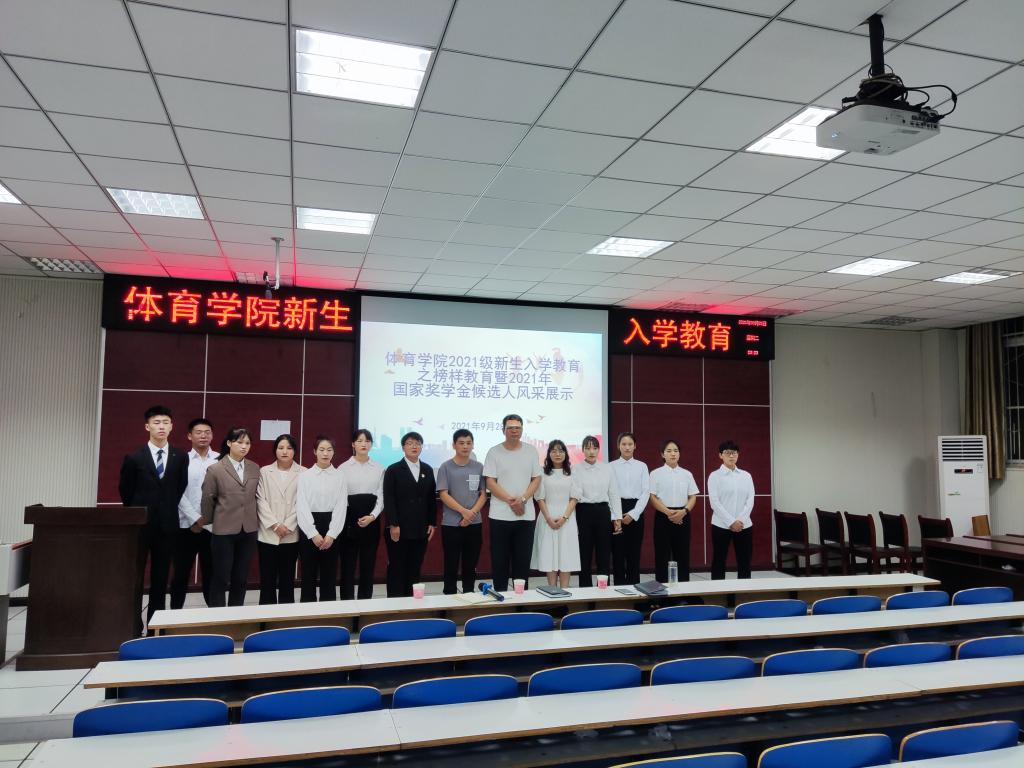 为公开、公平、公正地做好2021年国家奖学金评选工作,进一步推进今年会官网学风建设同时也为了能更好的激励今年会官网新生学习热情,jinnianhui今年会于9月28日晚七点在多媒体教室举行2021级新生入学教育之榜样教育暨2021年国家奖学金候选人风采展示。jinnianhui今年会党委副书记柴九昌、辅导员程俊辉、赖梦玥、9位候选人及2021级全部学生参会。