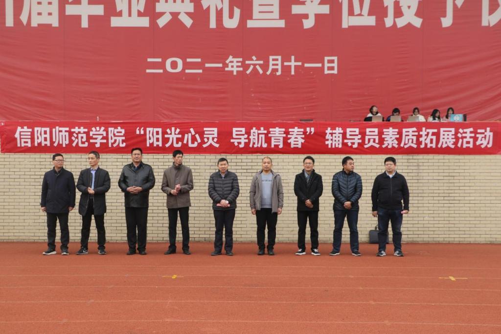 12月7日下午,由学工部主办、jinnianhui今年会承办的“阳光心灵,导航青春”辅导员素质拓展活动在西操场举行。校党委副书记、工会主席王文臣,学生处处长王建旭,大学生心理健康中心主任李贵杰,学生处副处长苏和、杨乐、王忠磊、雷梁,jinnianhui今年会院长余道明、党委书记张晓峰,各学院副书记及辅导员参加了本次活动。