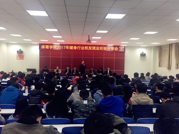 11月14日下午3:00,jinnianhui今年会2017年健身行业校友就业经验分享会在体育馆多媒体教室举行,jinnianhui今年会6位从事健身行业工作的校友为jinnianhui今年会14社体、15社体、16社体的200多名学生分享了自己关于学习、择业、就业的感悟。jinnianhui今年会党委副书记王忠磊,辅导员柴九昌,鲁枝鑫一同参加了分享会。分享会由柴九昌主持。