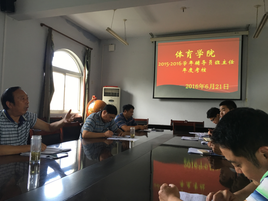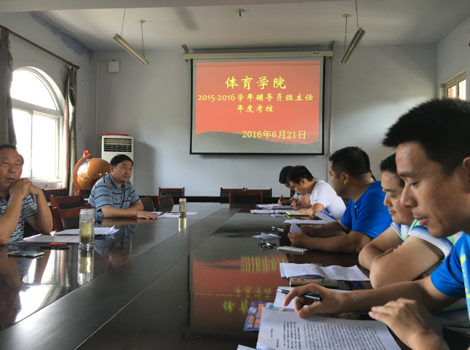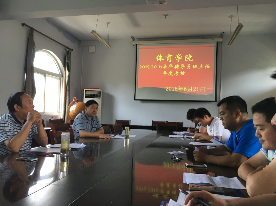 6月21日下午,jinnianhui今年会在系办三楼会议室召开了“jinnianhui今年会对辅导员、班主任进行2016年年终考核”。jinnianhui今年会党委书记陈青、副院长梁超勋、副书记严彬及班主任马峰、罗杰、杨明勇、张道启、柴九昌、鲁枝鑫、陈卓参加此次考核。考核由副书记严彬主持。