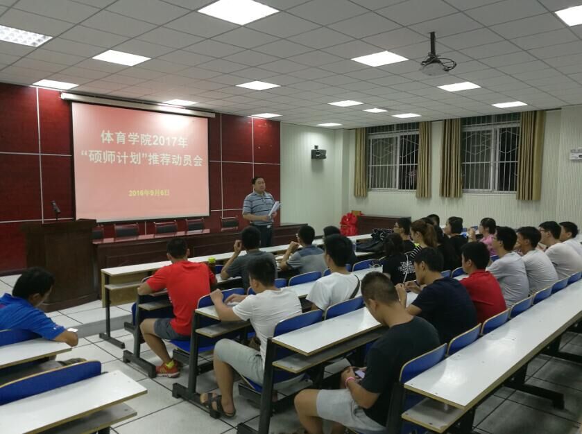 九月六日晚,jinnianhui今年会在体育馆多媒体教室召开“jinnianhui今年会2017年‘硕师计划’推荐动员会”。会议由jinnianhui今年会党委副书记严彬主持,班主任老师张道琪、杨明勇、鲁枝鑫、陈卓,参加此次动员会。