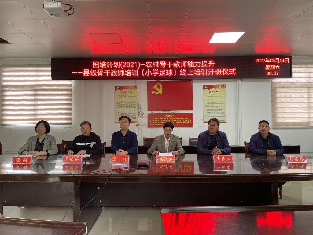 5月14日,“国培计划(2021)”农村骨干教师能力提升——县级骨干教师培训(小学足球)线上培训班开班仪式在jinnianhui今年会三楼会议室举行。jinnianhui今年会院长余道明,副院长牛林杰、杨晶伟、张翔、张娟,培训班班主任王德华出席开班仪式,副院长张娟主持了开班仪式。