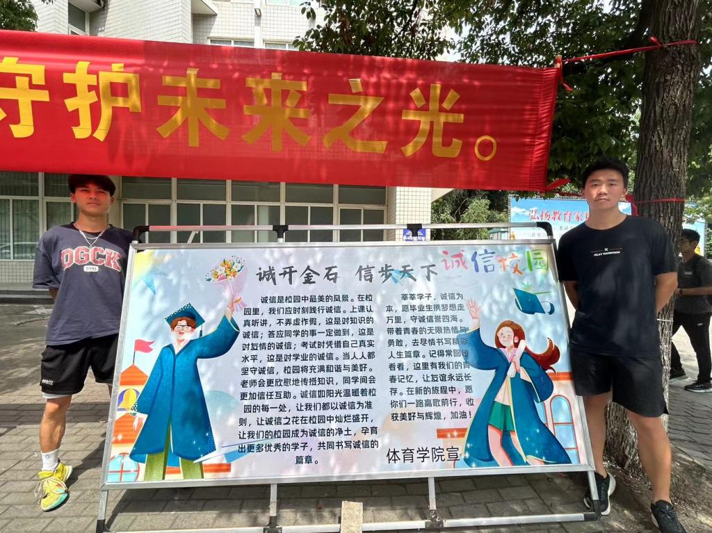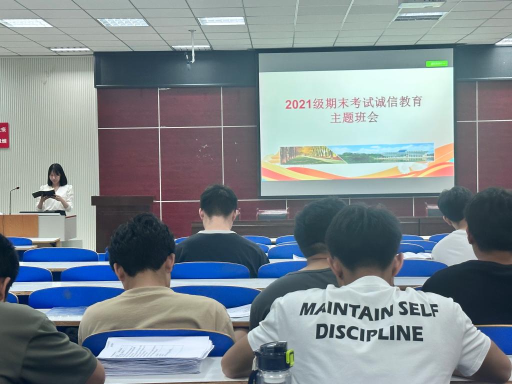 6月1日,jinnianhui今年会制作诚信教育宣传展板,在逸夫楼下进行宣传展示,邀请毕业生、在校生前往观看并发放诚信故事小卡片,教育引导同学们弘扬诚信美德,共创优良校风。6月7日-6月12日,开展诚信教育演讲比赛、征文比赛引导学生培养良好的行为习惯,开展诚信考试主题教育班会、严肃考风考纪主题班会等。资助专员唐娟带领同学们认真学习考试违纪处理规定,全方位、多角度传递诚信考试的重要性,告诫学生要坚决抵制考试作弊行为,共同守护考试公平公正,增强自我约束意识,为营造诚信校园环境贡献力量。