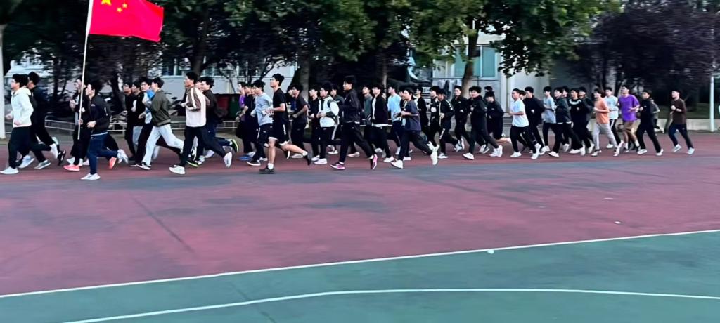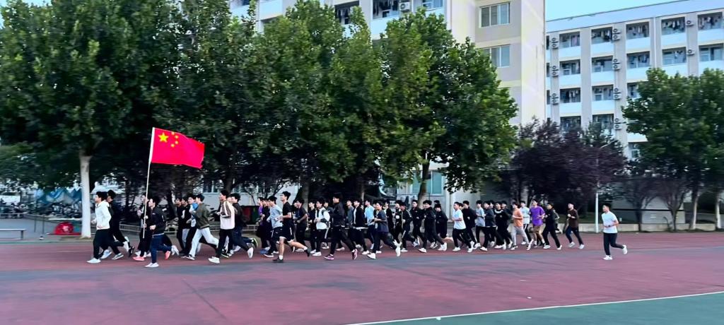 随着一声哨响,早训正式开始。同学们在教练的指导下,进行了一系列高强度的体能训练,包括快速跑、冲刺跑、折返跑等素质练习。他们挥洒着汗水,眼神中充满了坚定与执着,每一个动作都充满力量,每一声呐喊都彰显着青春的活力。