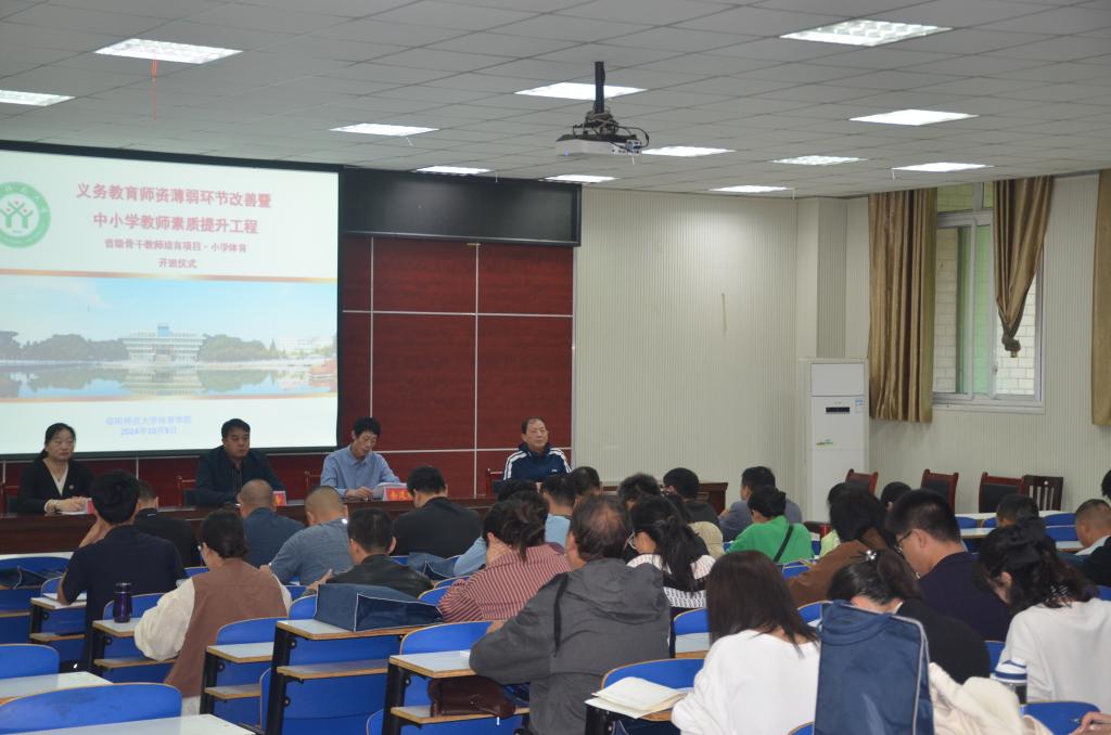 10月9日上午,由今年会官方网站承办的“2024年紧缺薄弱学科(小学体育)教师培训项目”开班仪式在体育馆多媒体教室举行。jinnianhui今年会党委书记张晓峰、院长余道明、副院长张娟、培训项目班主任王德华教授出席了开班仪式,来自漯河、南阳、信阳、驻马店、济源、新乡等6个区域的参训学员参加了仪式。仪式由张娟主持,余道明、张晓峰分别讲话。