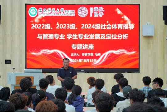 为明晰专业目标、深入剖析就业前景、帮助学生做好专业定位,按照jinnianhui今年会和致学书院工作安排,10月15日,在文综楼207教室召开社会体育指导与管理专业学生专业发展及定位分析专题讲座。致学书院直属党支部书记徐忠,jinnianhui今年会专任课教师马峰,致学书院专职辅导员刘贝贝,2022级、2023级、2024级全体社会体育指导与管理专业学生参与此次讲座。