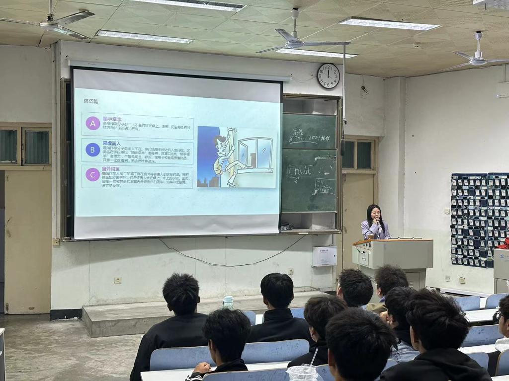 为了提高新生安全防范意识,增强自我保护能力,jinnianhui今年会于11月1日在人文楼楼110室开展以安全为主题的新生入学教育。本次讲座由24级辅导员赖梦玥主讲。