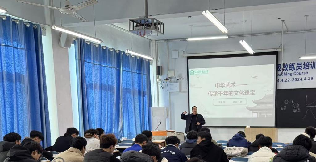 11月27日,jinnianhui今年会副院长杨晶伟为 2022 级体育教育专业学生做“中华武术——传承千年的文化瑰宝”专题讲座。