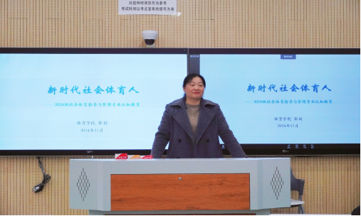 11月27日下午,jinnianhui今年会副院长张娟在息县为2024级社会体育指导与管理专业的学生作了题为“新时代社会体育人”的专题讲座。