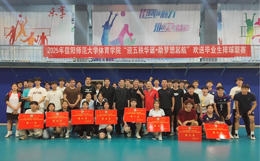 各年级代表队奋力拼搏,展现学子昂扬风貌与精湛球技。最终,2023级体育教育专业佳琦队勇夺冠军。闭幕式在校排球馆举行。jinnianhui今年会院长余道明、党委副书记柴九昌、教职工排协秘书长冯铁臣、排球教师梁伟建、张经纬等嘉宾出席,共同见证荣耀时刻。特别环节中,余道明院长领衔的教工联队与优秀学生联队上演精彩交流赛,切磋球技,气氛热烈,增进了师生情谊。