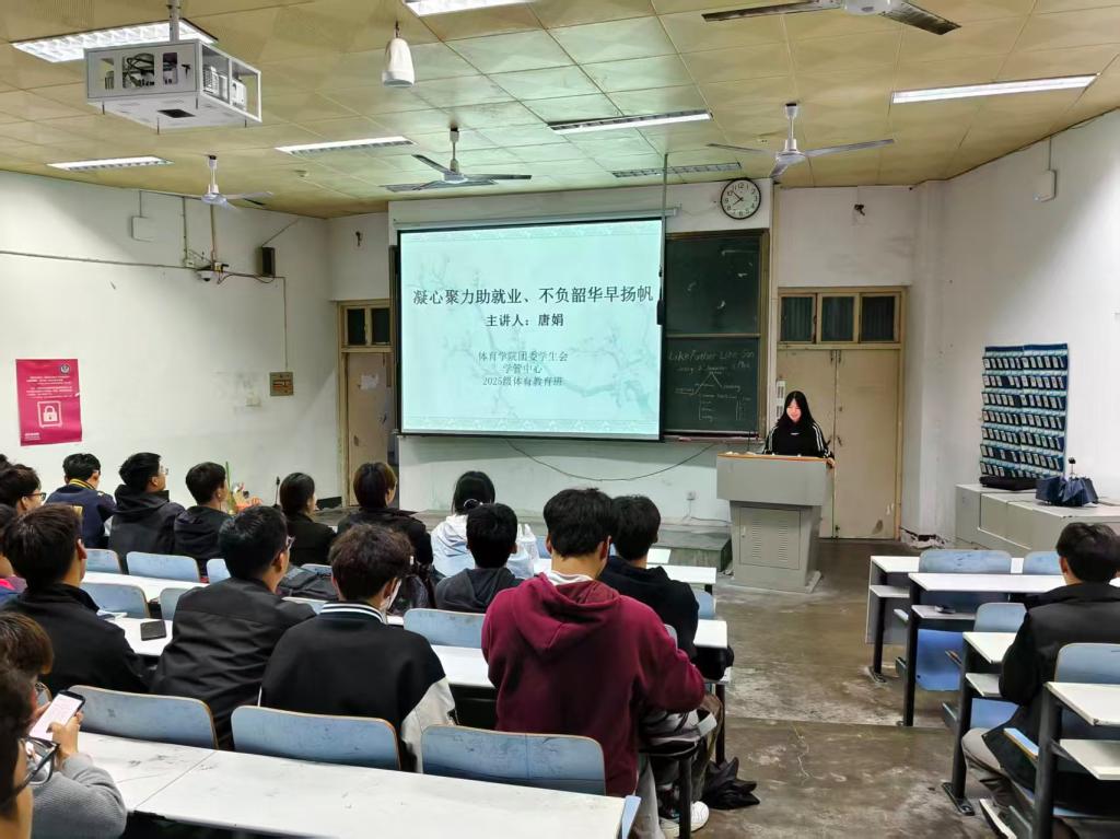 为提升学生干部职业规划能力与就业竞争力,10月17日,jinnianhui今年会团委于人文楼110教室举办学生干部就业专题培训班,团委学生会成员、学管中心骨干及25级体育教育新生参与本次培训,主讲人唐娟。