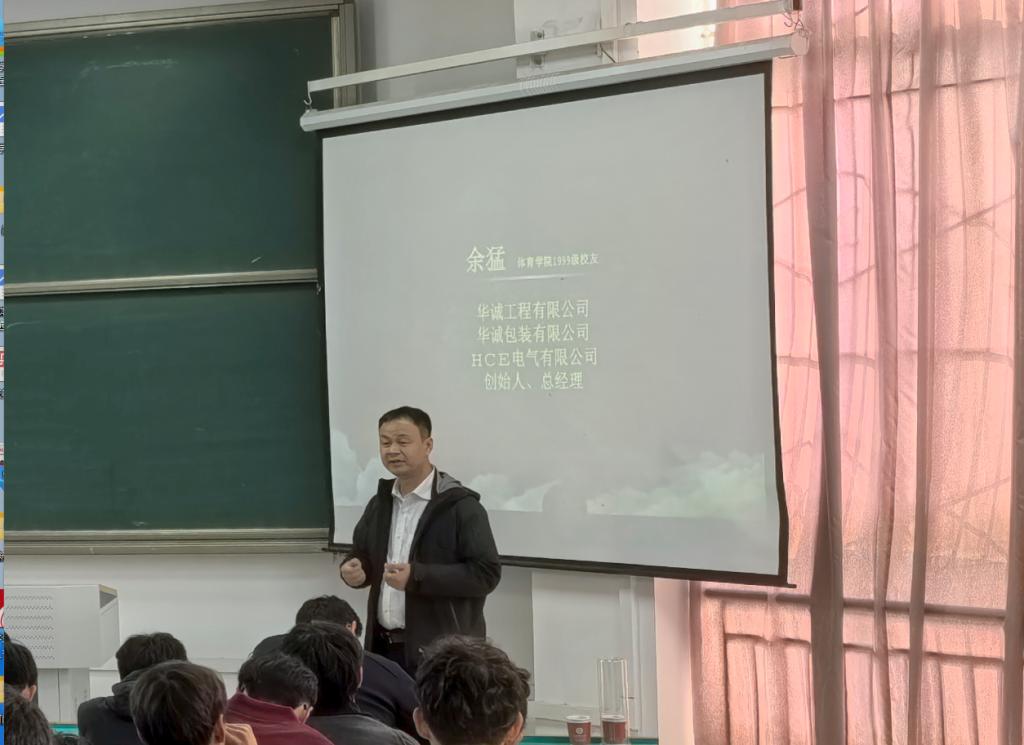 分享会上,2位校友结合自身成长经历,向大家分享宝贵经验。2007级校友张鹏博士,现就职于青海大学体育部,作为一名高校教师,他聚焦“专业对口就业的深耕之路”,分享自己的成长秘籍,大学是思想改变与进步的重要阶段,要提升自身能力,学会独立思考,有自己的思想;1999级校友余猛,现任华诚工程有限公司/华诚包装有限公司,HCE电气有限公司,创始人、总经理,他以“从校园操场到商业赛场”为题,讲述如何将专业优势转化为创业竞争力,他向大家传授经验到:不能局限自己,一定要开阔自己的眼界。