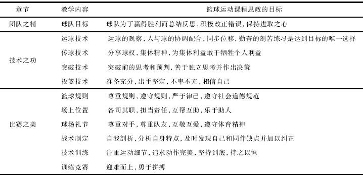 表3高校篮球运动的课程思政教育体系